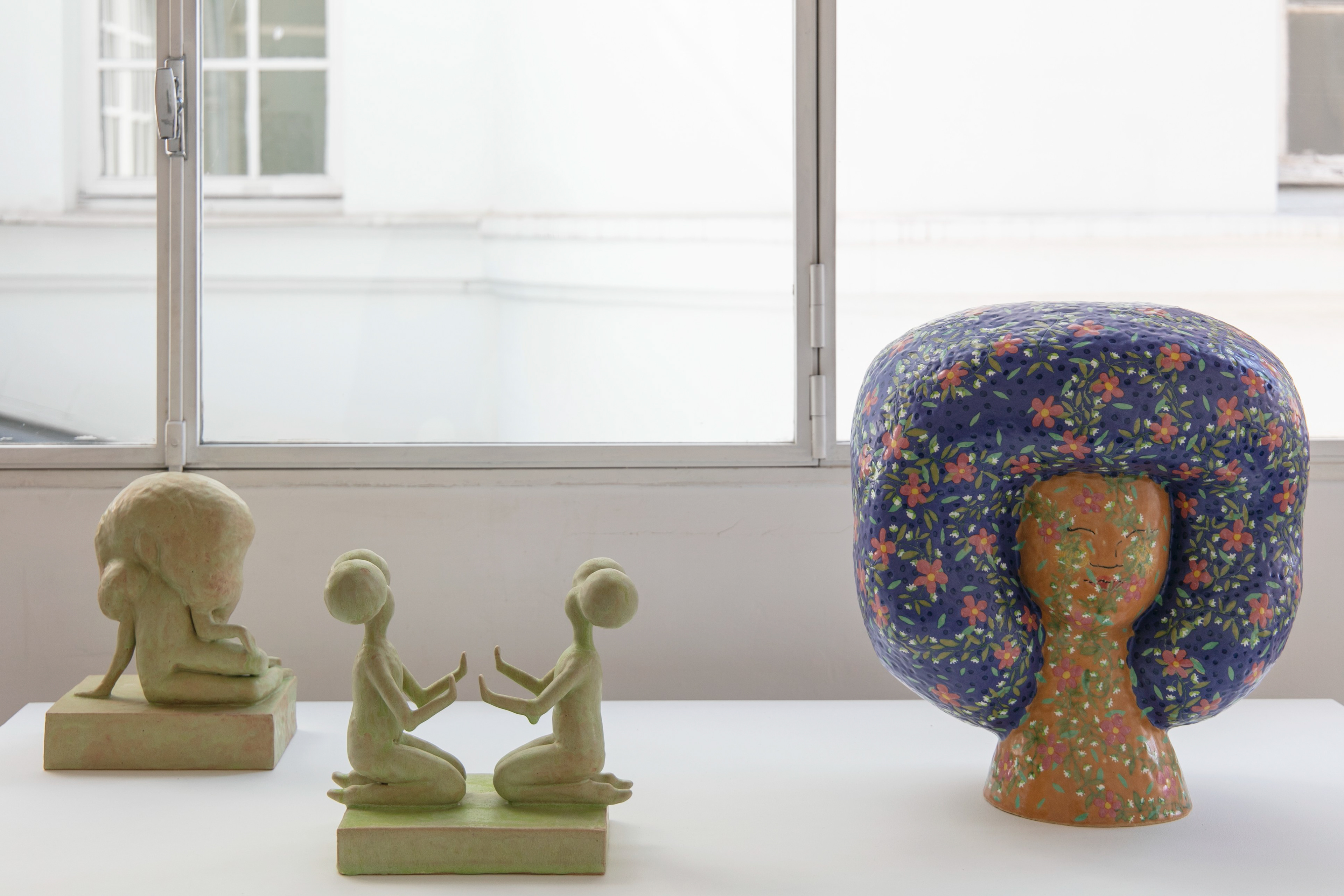 Marissa Y. Alexander, elle, façonne l’argile pour traduire visuellement ses réflexions sur la vie quotidienne et envisager l'idéal au milieu de la réalité contemporaine. Au fil du lent processus de travail de l’argile en colombins, l’artiste laisse ses pensées et ses souvenirs en mutation s’entremêler et s’égarer, et c’est à travers la plasticité de la matière et du temps qui passe qu’elle transpose ses souvenirs fugaces dans ses œuvres. Le point de départ et celui d’arrivée sont parfois désalignés, et c’est la trajectoire entre ces deux points qui détermine l’œuvre.