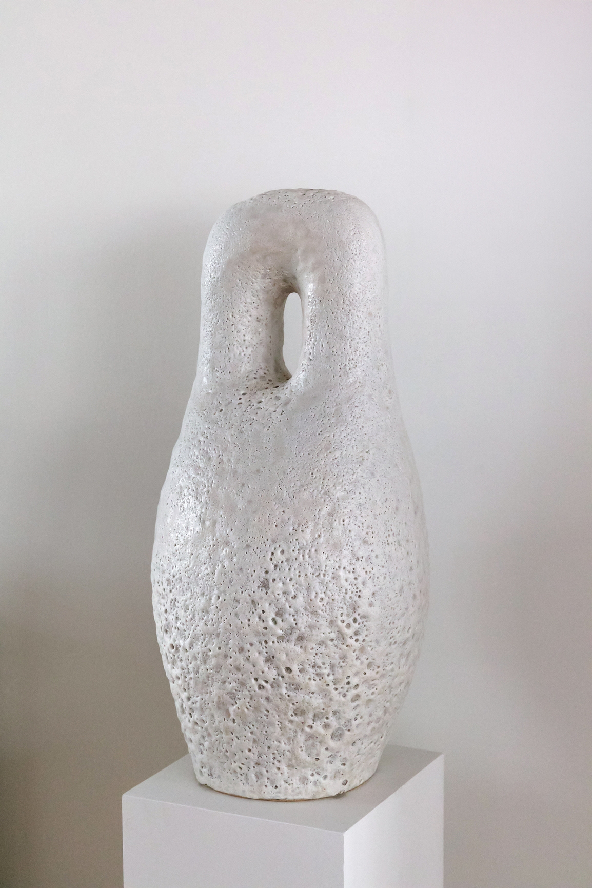 Inspiré par les paysages marins bretons, Guillaume Garès traduit en céramique la poésie des concrétions, du sable et de l’écume. Ses formes organiques, montées au colombin, prennent vie sous l’émail, révélant cratères et textures qui semblent sculptées par la mer et le temps.