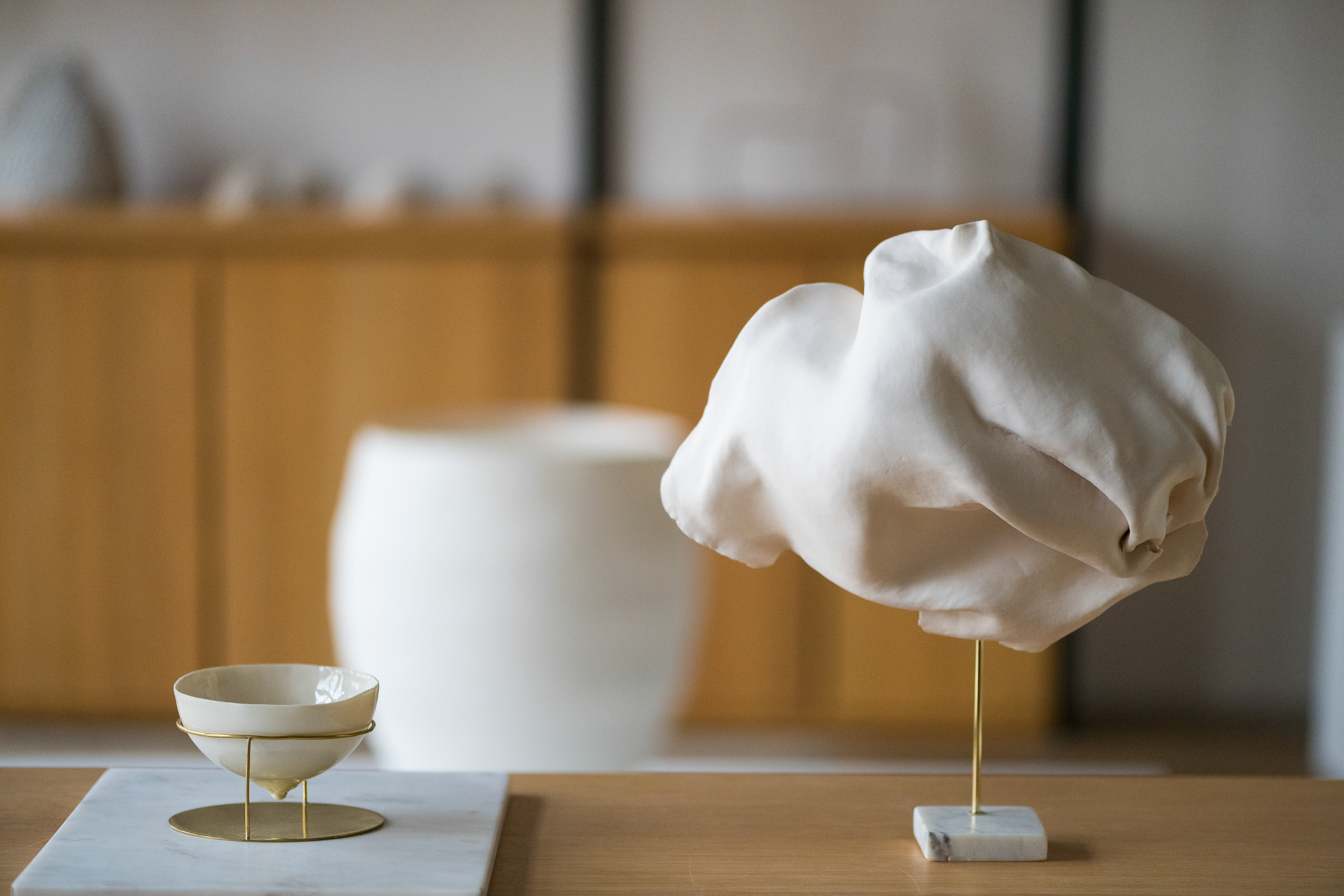 Du bijou à la sculpture, la collection PAÏ voit le jour. Le duo créé des pièces, en se laissant guider par cette porcelaine de modelage qu'ils ont appris à connaître et à aimer à la faveur d’une longue initiation. L'art brut, le surréalisme et la mimèsis se mélangent et apportent un message, la paille devient une icône. Tubulaire, conique, difforme, celle-ci se construit, se déconstruit, s'allonge, se casse. Le style épuré s’exprime directement en volume, sans passer par le dessin. Surface mate ou brillante, monochrome ou en dégradé de couleurs qui évoquent l’aquarelle, la porcelaine s’autorise alors toutes les libertés dans un jeu subtil d’ombres et de lumières qui vient nuancer la matière.