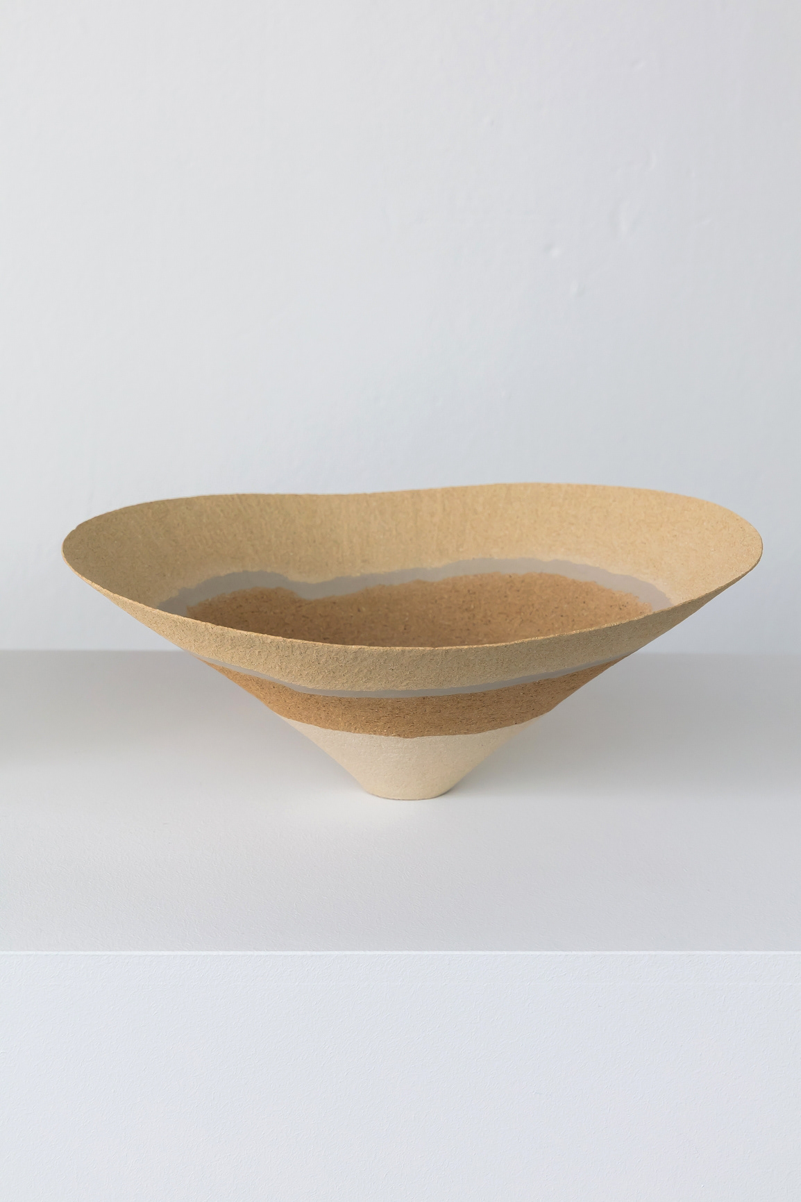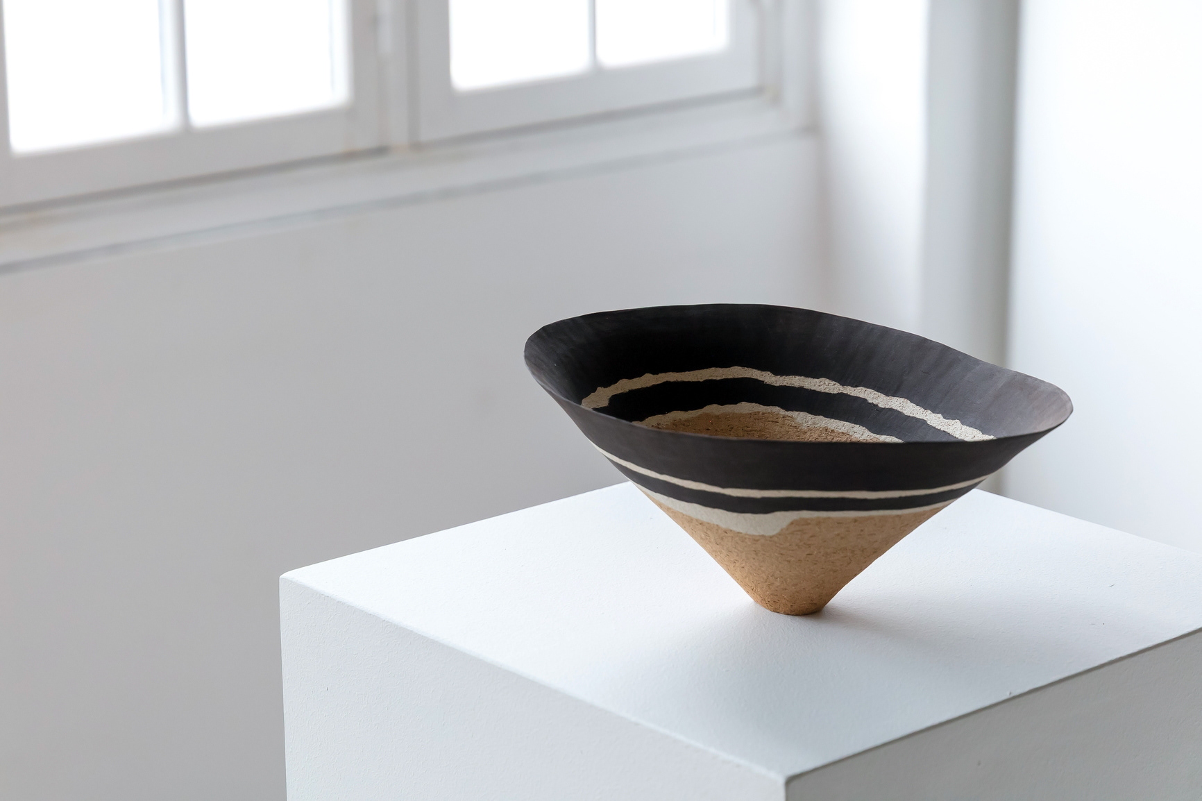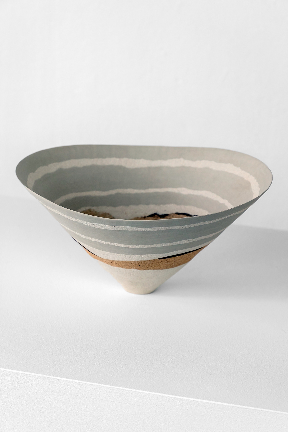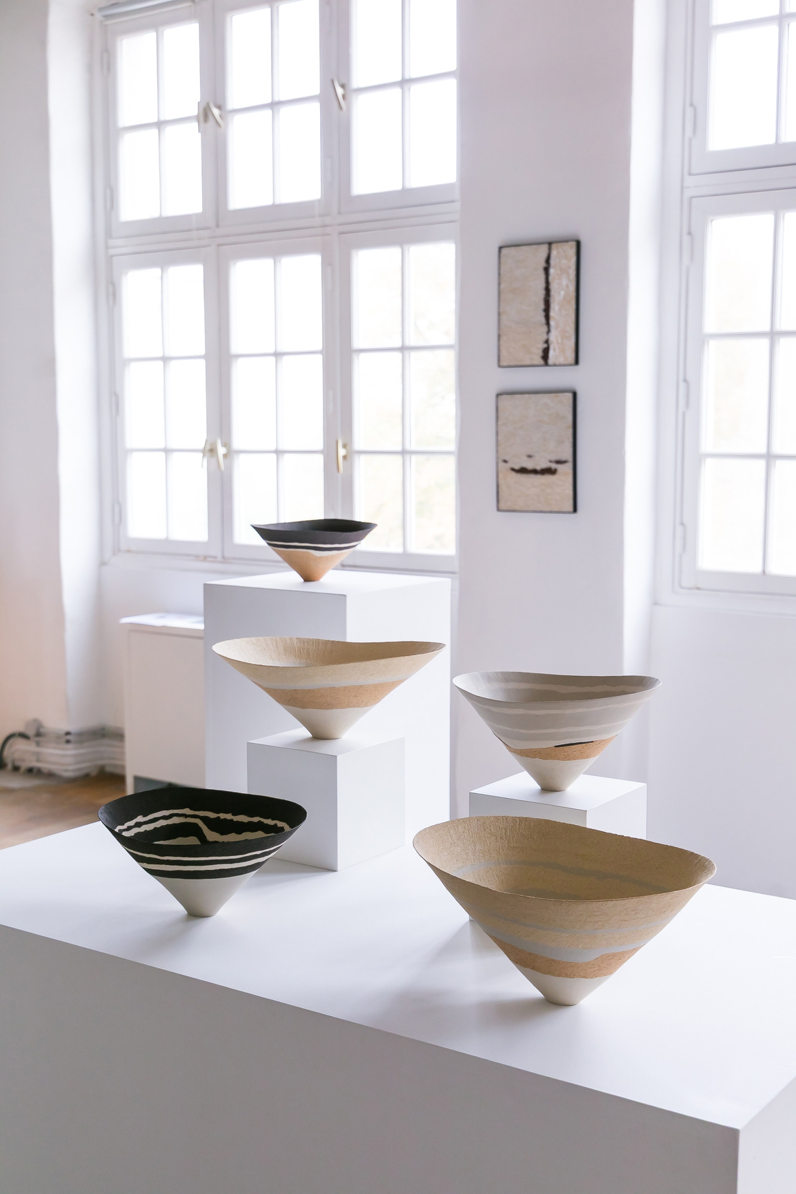 En changeant d’échelle, elle essaie de donner à voir ce qui l’interpelle : les courbes, les strates, les nuances de couleurs, les contrastes. Elle choisit de mettre en avant la terre brute, sans émail ni coloration, jouant sur les textures et les nuances d'argiles. Un travail autour de la matière, sans artifices.
