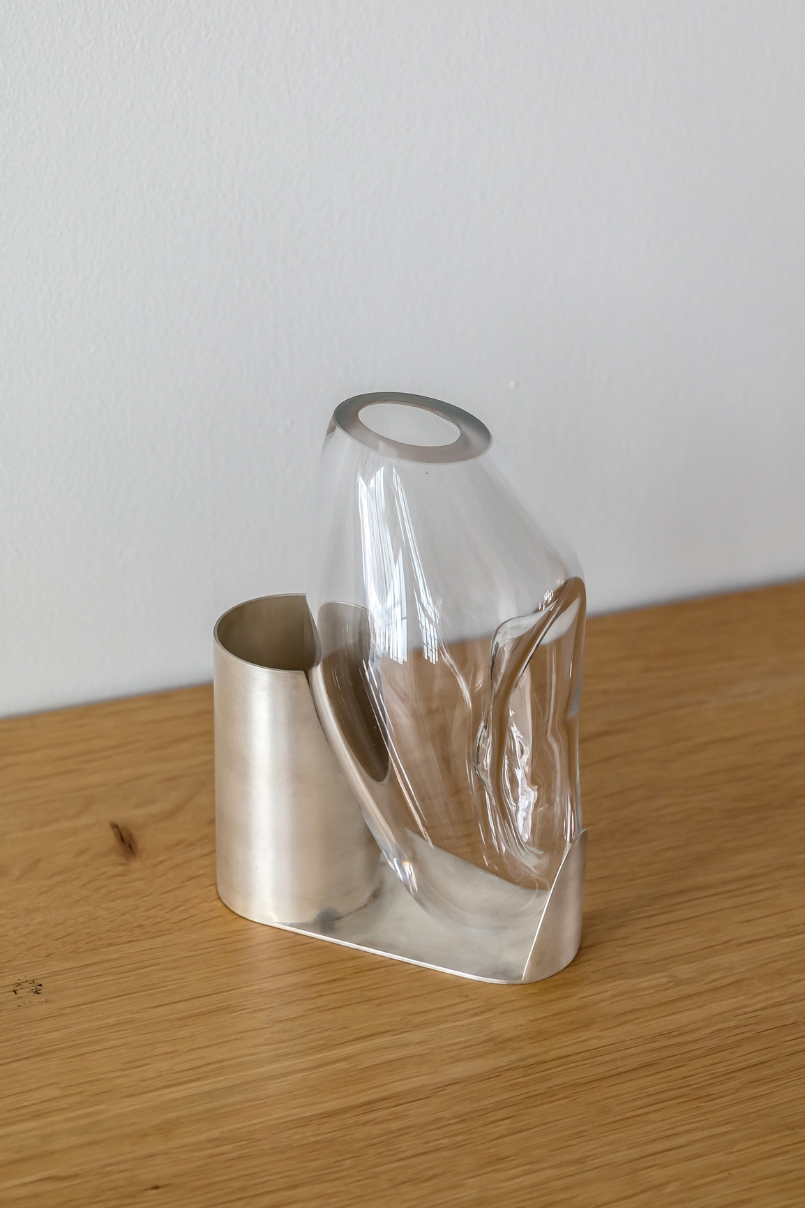 Ludivine explore les jeux d’échelle et réinvente la place du verre dans l’objet, en le mettant au centre du propos artistique. Par ses reflets, ses déformations, ses accidents maîtrisés, le verre trouble les sens, dérange les habitudes et invite à la contemplation. Le laiton vient équilibrer cette distorsion, créant un dialogue entre fragilité et résistance. Entre maîtrise du geste et ouverture au hasard, son travail est une quête de justesse : celle d’un équilibre entre émotion, matière et mémoire.