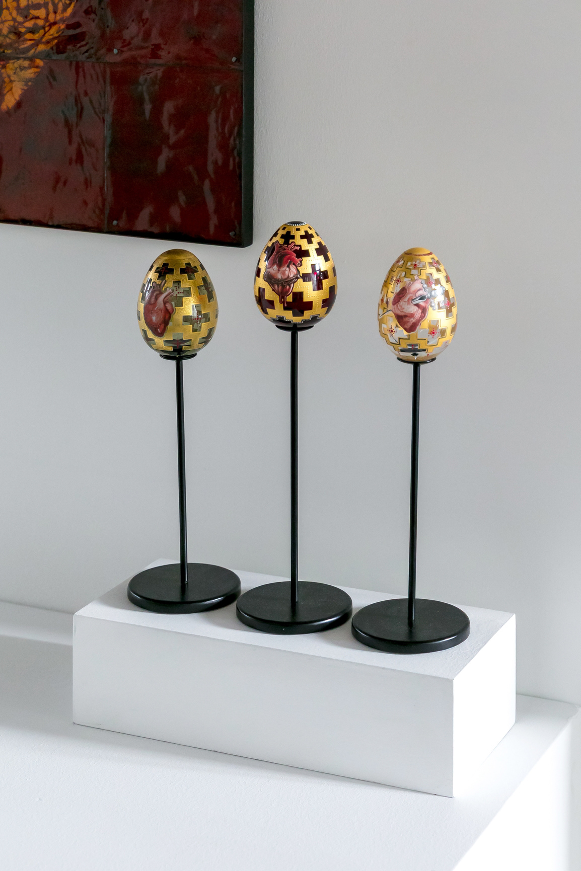 Pour sa dernière collection d’œuvres uniques, évoquant les thèmes universels de l'amour, la mort, la religion, la vie, le doute, la passion, ou la beauté, il part d’une forme simple - l’œuf - et dépeint des allégories surréalistes, teintées de poésie. Une invitation à un voyage onirique dans son imaginaire.