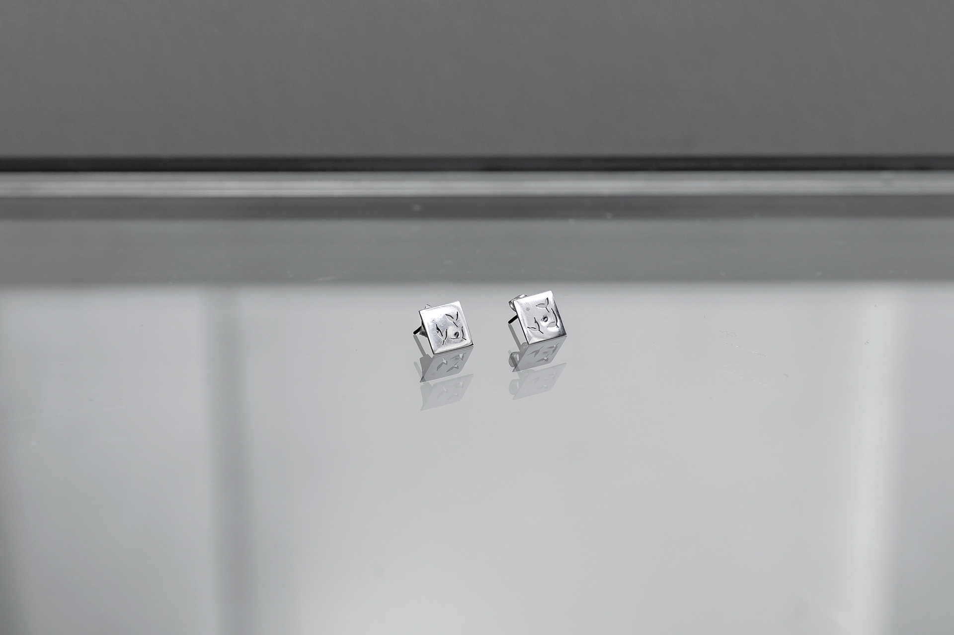 Sara Bran, Boucles d'oreilles carrées "3 feuilles", argent 925